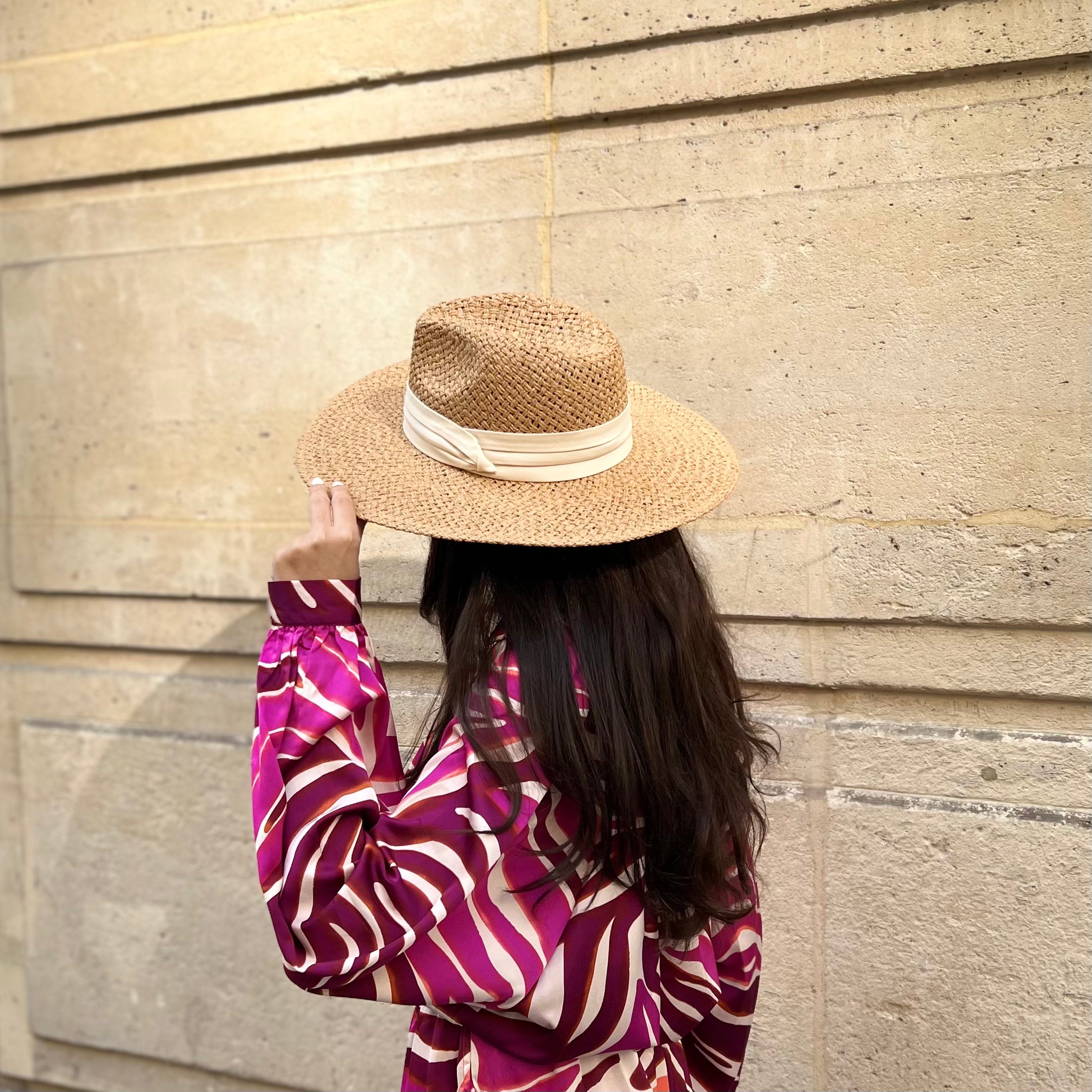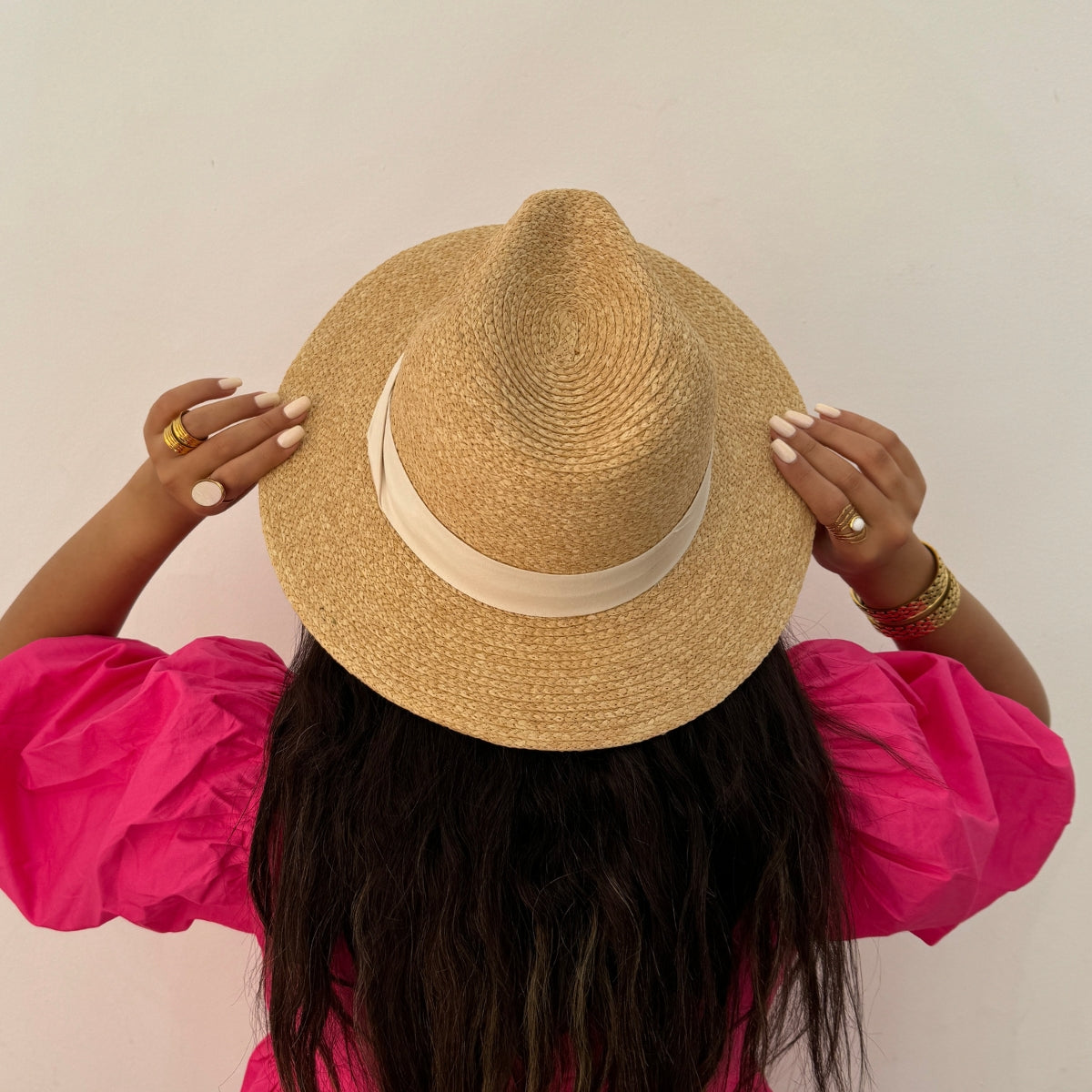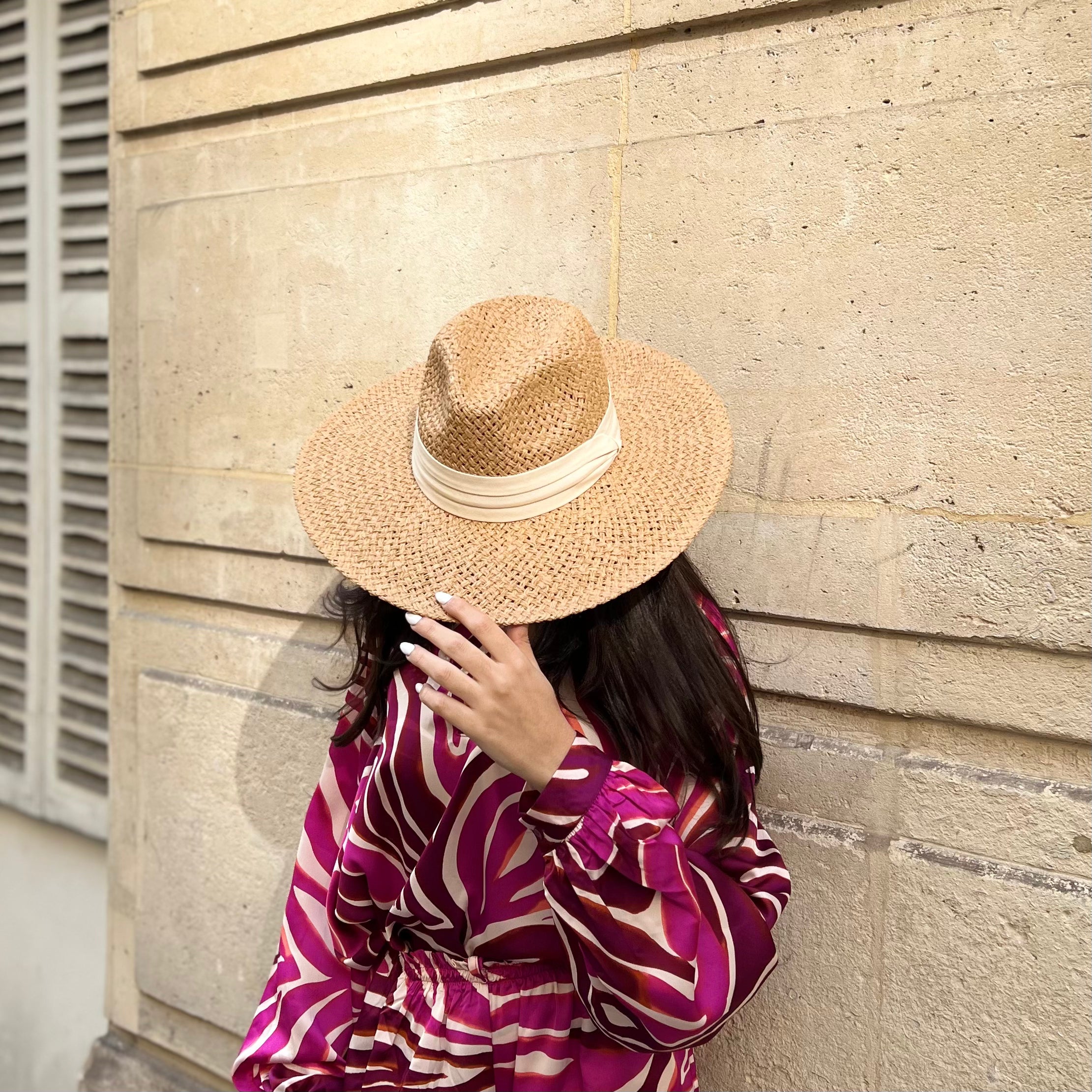 Chapeau Panama en raphia avec bande Blanche - Naturel