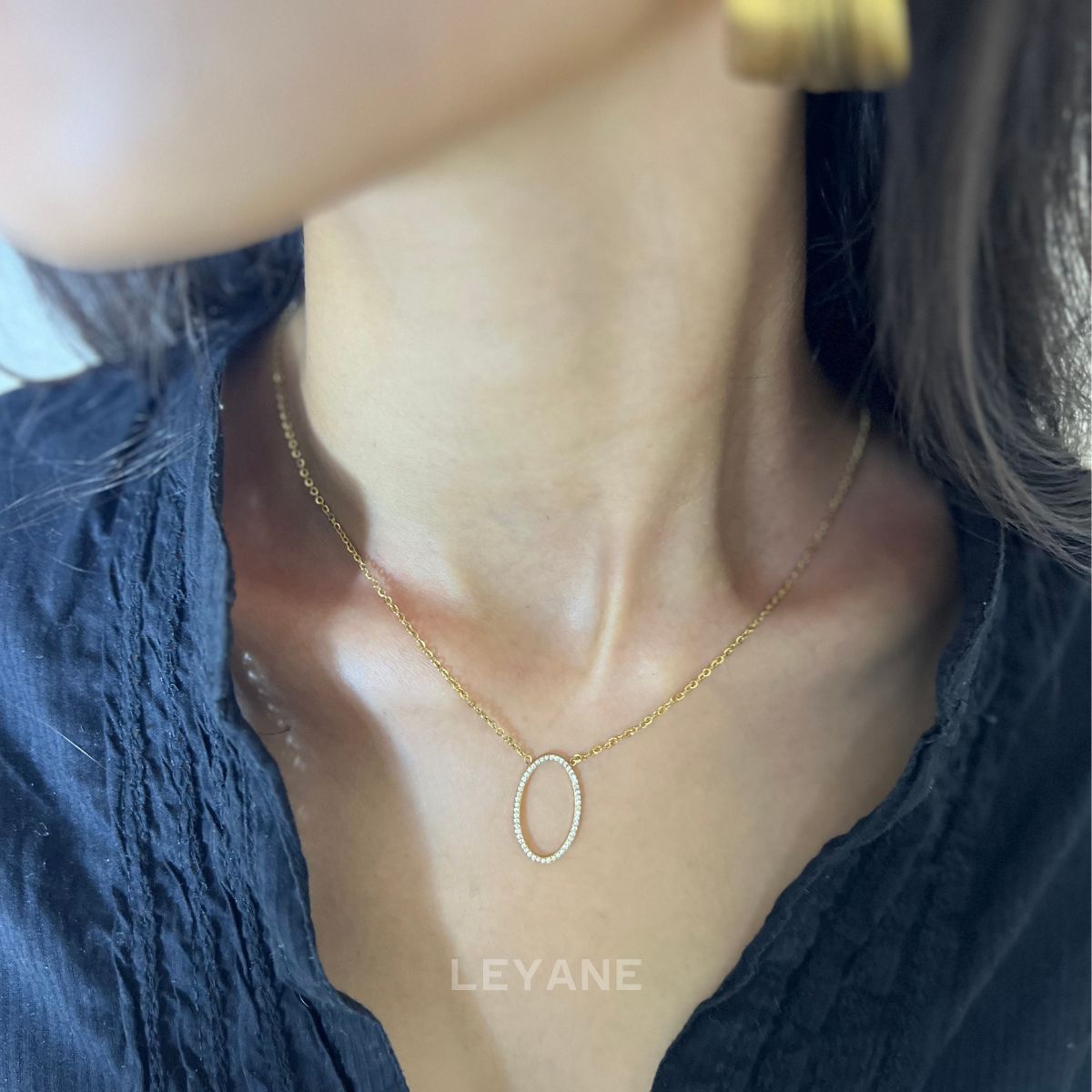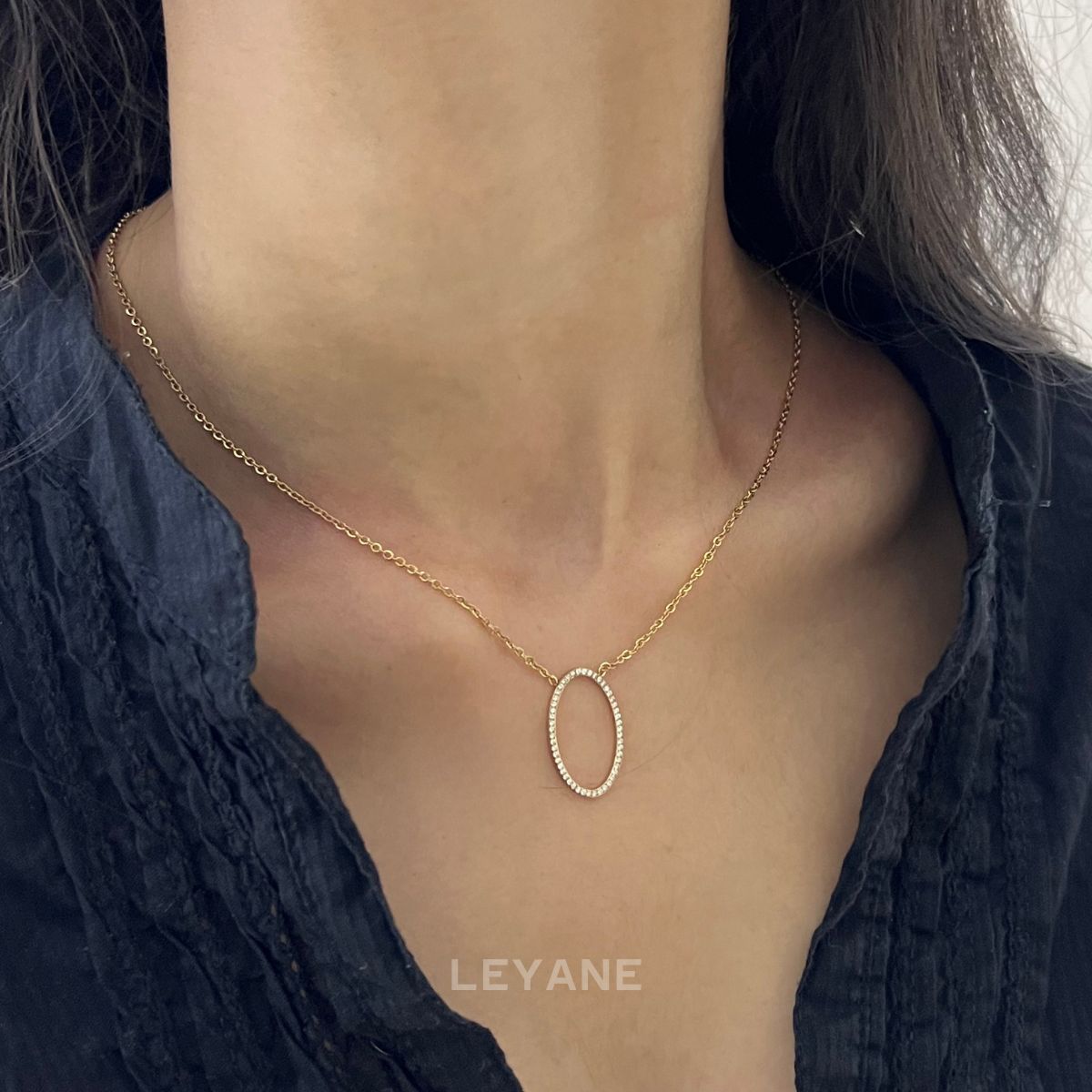 Collier ovale gold en acier inoxydable chirurgical avec zircons. Cadeau idéal pour une occasion spéciale ou au quotidien.