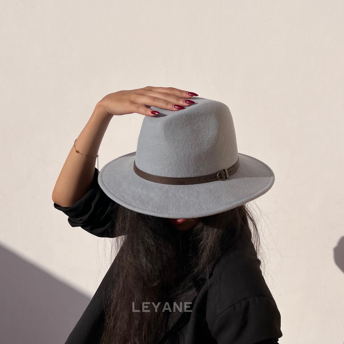 Chapeau gris avec ceinture en cuir - unisexe, chapeau en ligne, chapeau Maroc, chapeau de luxe