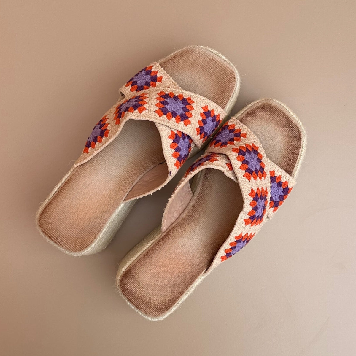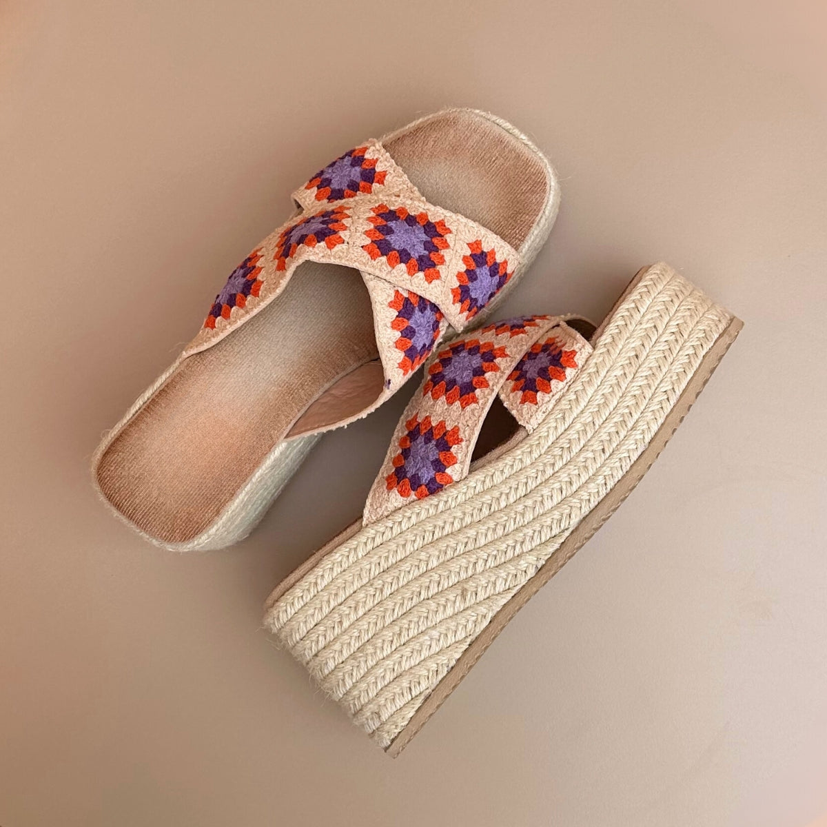 Sandales Compensées à motifs orange et violet je