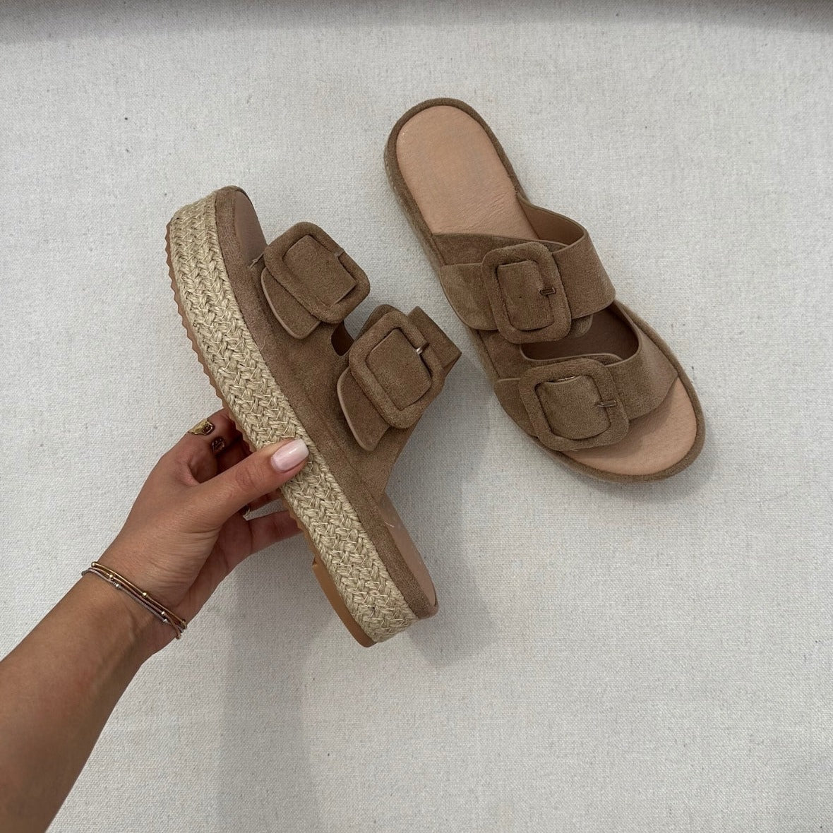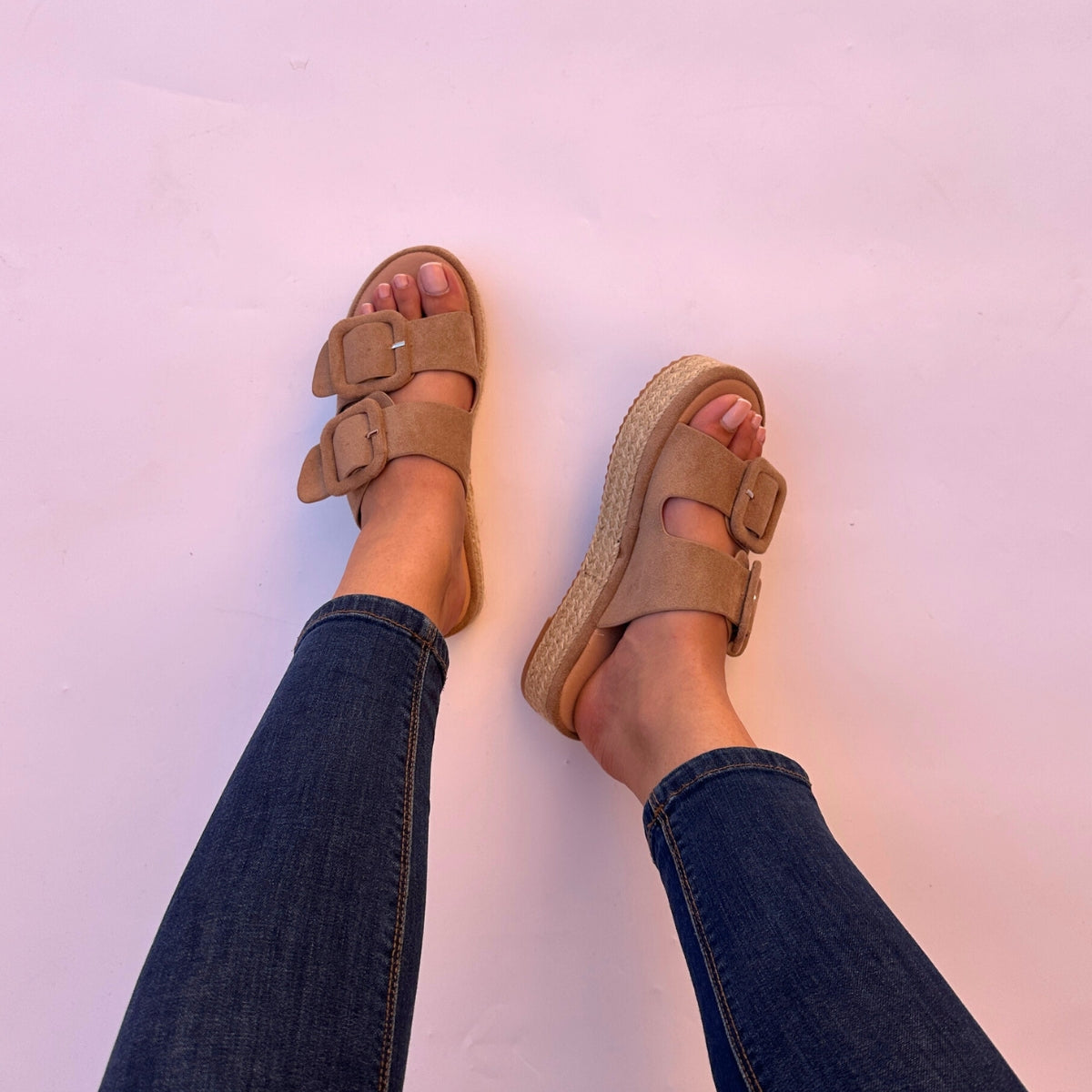Découvrez notre collection de sandales compensées pour femme, alliant style et confort.Parfaites pour les journées estivales à Marrakech ou les soirées en bord de mer, ces sandales offrent une hauteur élégante sans compromettre le bien-être de vos pieds.Disponibles en cuir, daim ou toile de jute, elles s'adaptent à toutes vos tenues, du look bohème au style chic.