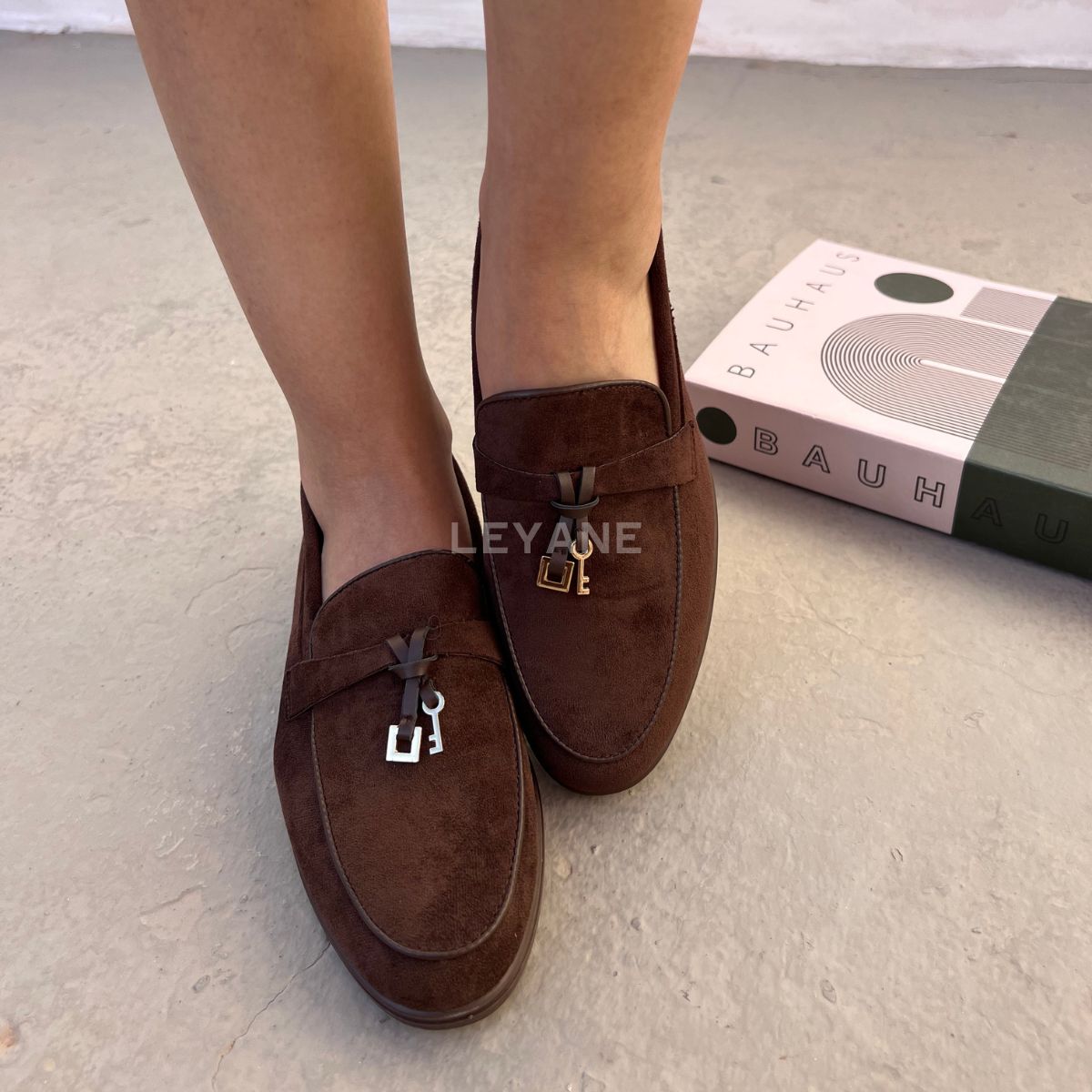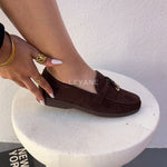 Mocassin à glands en daim synthétique pour femmes couleur marron.